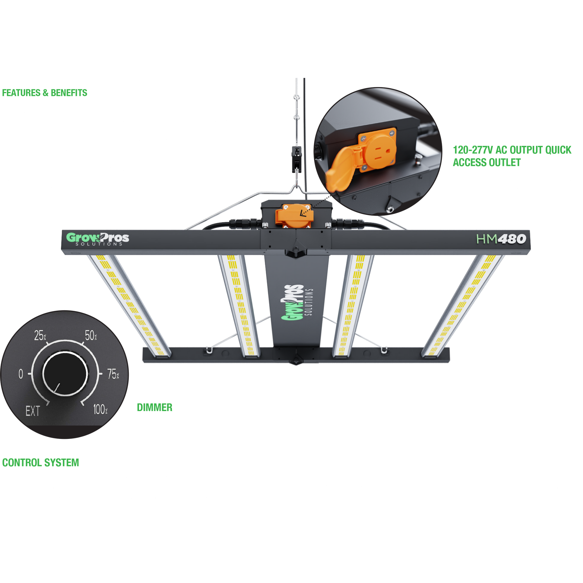 The HM480 lighting system is a complete, pre-assembled LED grow light that lowers installation time with a wide range of wiring techniques and connectors. It runs cool thanks to a passive cooling thermal management system, meaning your lighting systems last longer while retaining high light output levels. Longer lifespan means you can grow crops for many years without needing to replace the lighting system, reducing costs.