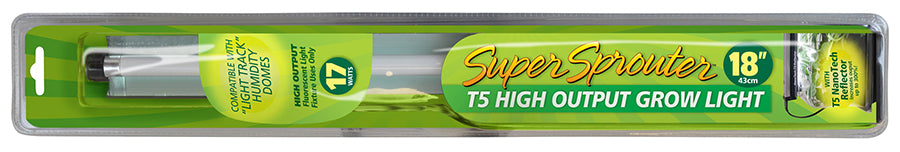 uper Sprouter now offers the 18 in T5 High Output Grow Light fixture with the nano-tech reflector. This fixture includes an integrated electronic ballast, 6400° K lamp, power cord, jumper cord and mounting clips (hanging and flat surface). You can daisy chain up to 8 lights per single power cord. The reflector uses nanotechnology to maximize reflection. The 18 in fixture is designed specifically to fit Super Sprouter Light Track Domes.
